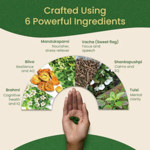 - Water hyssop (Brahmi): Helps improve brain power, cognitive health & IQ