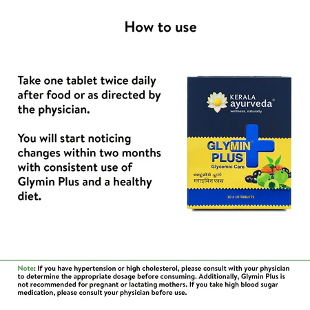 Kerala Ayurveda Glymin Plus helps balance blood sugar levels and improves insulin secretion and glucose utilization in the body. It is also beneficial in managing the long-term complications of diabetes and polyphagia.