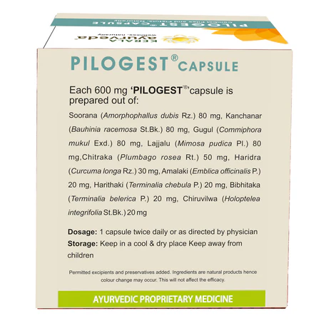 • Pilogest capsule helps tackle the symptoms seen in piles and fistula like severe constipation, inflammation, and bleeding.