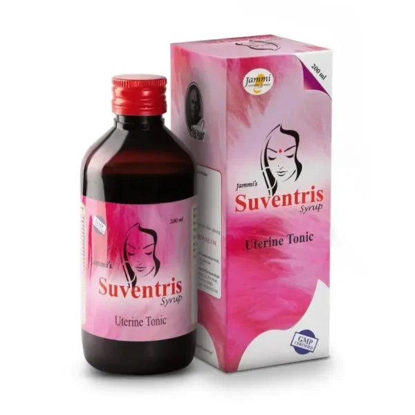Suventris Syrup 200 ml is an Ayurvedic formulation primarily designed to support women’s reproductive health, especially in managing various menstrual and uterine concerns.